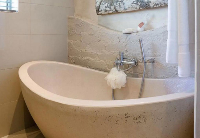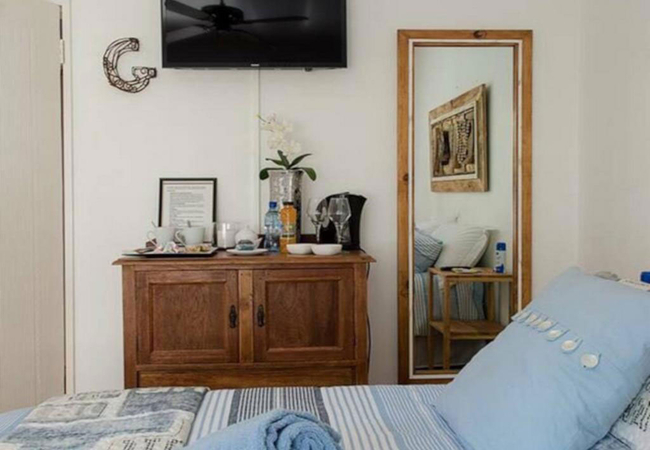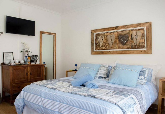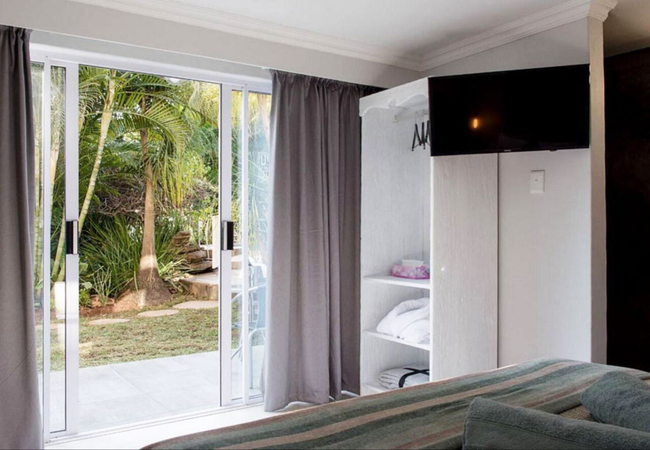 Jonah is a deluxe room furnished with a Queen-size bed. The en-suite bathroom is fitted with a shower, toilet and basin. Each room contains a tea and coffee station with a Nespresso coffee machine, hairdryer, a flat-screen TV with satellite channels, and air-conditioning. Free Wi-Fi internet access is available. Sliding doors open onto a patio with outdoor furniture.