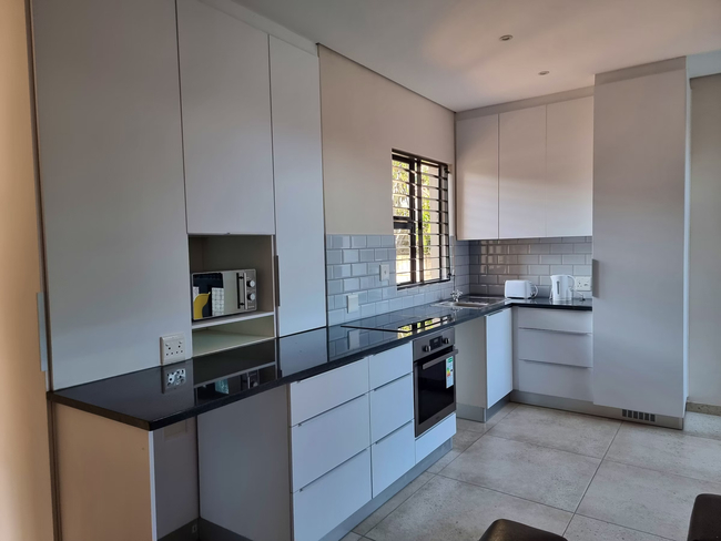 Each fully furnished apartment features two bedrooms and one bathroom, providing comfortable accommodation for guests. The apartments include a well-equipped kitchen, perfect for self-catering, along with a spacious open-plan dining and lounge area designed for relaxation. Air conditioning, BBQ/braai facilities, and complimentary Wi-Fi are also available for your convenience. The apartments are equipped with several amenities, including Wi-Fi, a non-smoking environment, a sitting area, air conditioning, and a ceiling fan. Daily cleaning services are provided. Guests can enjoy views of the garden from the dining table, making it a perfect spot for meals. The bathroom offers separate tub and shower facilities, while the kitchen is fully equipped with modern conveniences such as coffee and tea facilities, a refrigerator, microwave, oven, toaster, and a full set of cooking amenities. BBQ/braai equipment is also available for outdoor dining experiences.