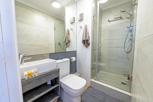 Experience sophisticated coastal accommodation in this 2-bedroom, 2-bathroom apartment located on the 3rd floor of a secure building in Bloubergstrand. Here, you'll enjoy sweeping views of the ocean, mountain ranges, and city skyline from a private balcony outfitted with comfortable outdoor furniture and BBQ facilities—a perfect spot to unwind with a refreshing sea breeze. The well-equipped kitchen includes a dishwasher, refrigerator, microwave, oven, toaster, and a 2-plate stove, providing everything you need for effortless meal preparation. The building also offers communal laundry facilities for added convenience. Inside, relax in the inviting sitting area featuring a Smart TV, Netflix, and uncapped internet, or take advantage of a desk space that offers inspiration with scenic views. Designed with comfort in mind, the apartment features a cot for families, a heater for cooler days, and coffee and tea amenities. Each bathroom is fitted with quality fixtures: one includes both a bathtub and a shower, while the second features a standalone shower. An iron, ironing board, hairdryer, and washing machine further enhance the convenience, making this apartment a thoughtfully prepared retreat. The building provides secure off-street parking and a lift, ensuring easy access for all guests. Whether soaking in the views or enjoying the comfort of these inviting spaces, a memorable stay awaits in this seaside Blouberg apartment.
