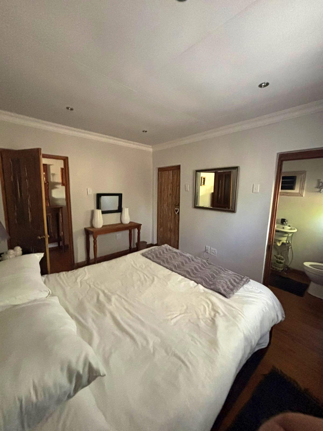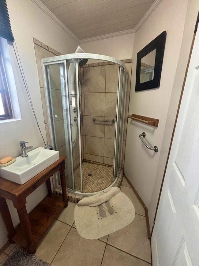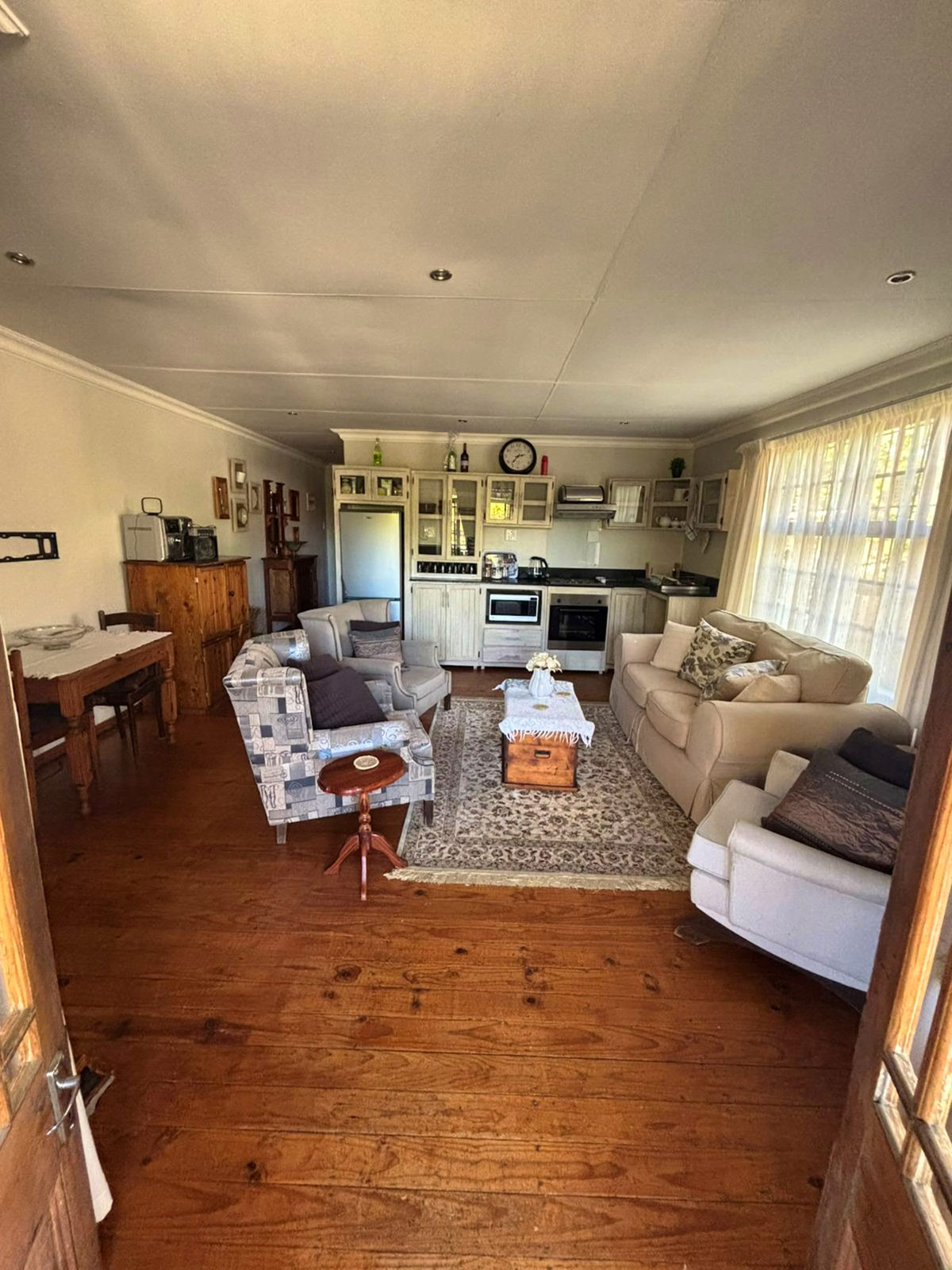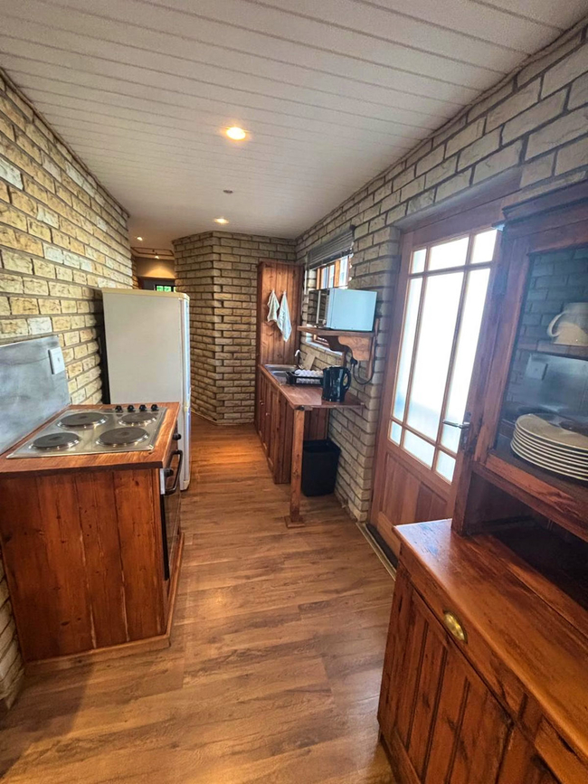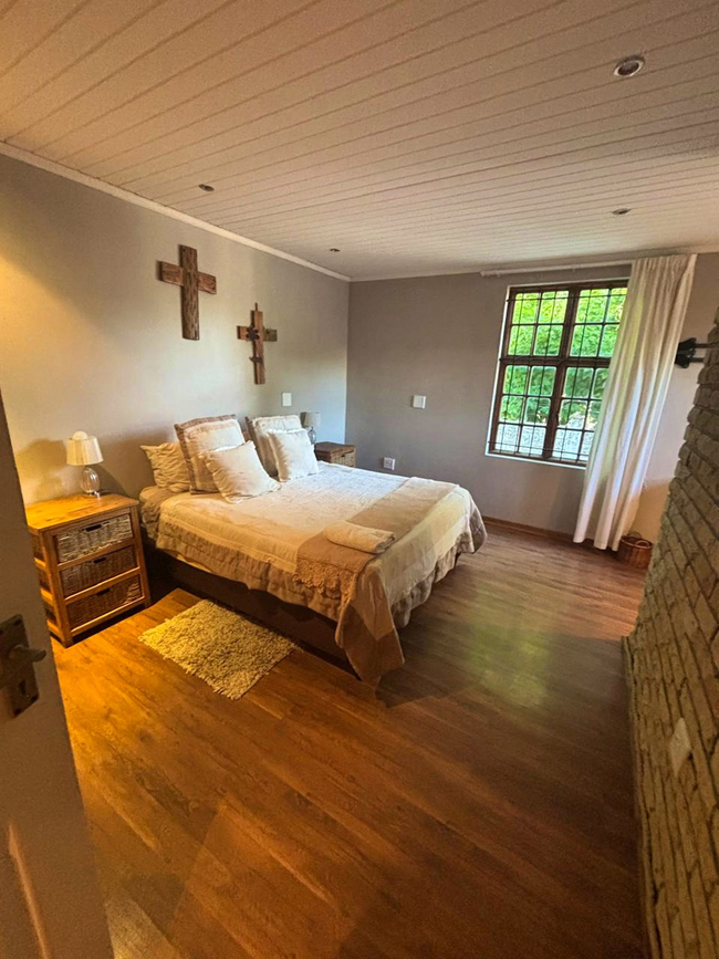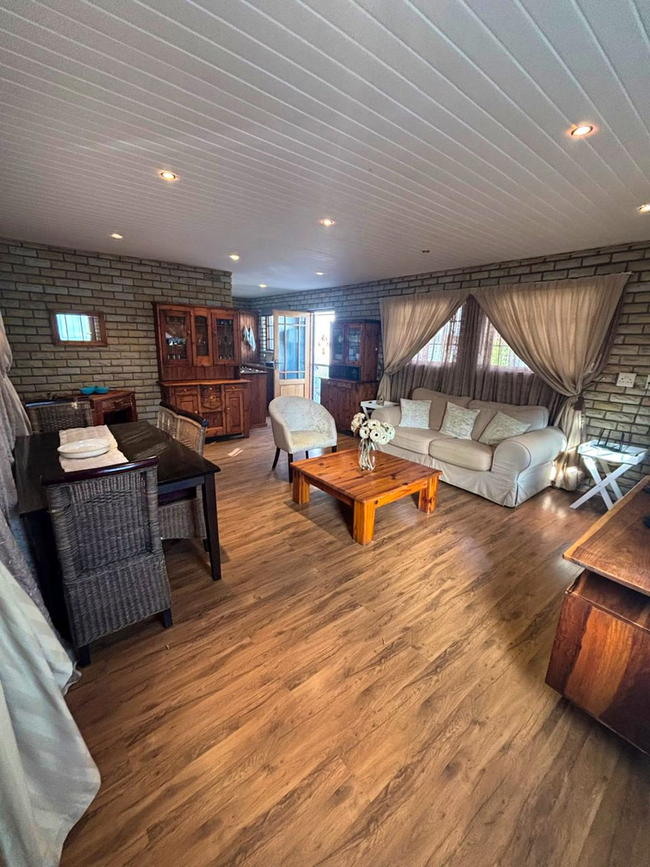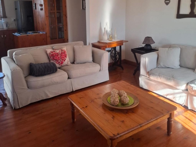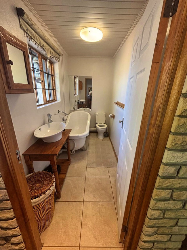 This well-appointed cottage is designed to host up to four guests, offering two comfortable bedrooms, each furnished with a double bed. The main bedroom features an en-suite bathroom that includes a bath and toilet, while the second bathroom is fitted with a shower and toilet. Guests are provided with fresh linen and soft bath towels to ensure a comfortable stay. The kitchen is thoughtfully equipped with all the essentials for self-catering, including a fridge-freezer, stove, oven, microwave, toaster, and kettle. From the kitchen, the space flows naturally into a dining area with a table that seats four, and onward to a cosy lounge arranged with a comfortable couch and a Smart TV offering DStv access. Wi-Fi is also provided, allowing guests to stay connected throughout their visit.