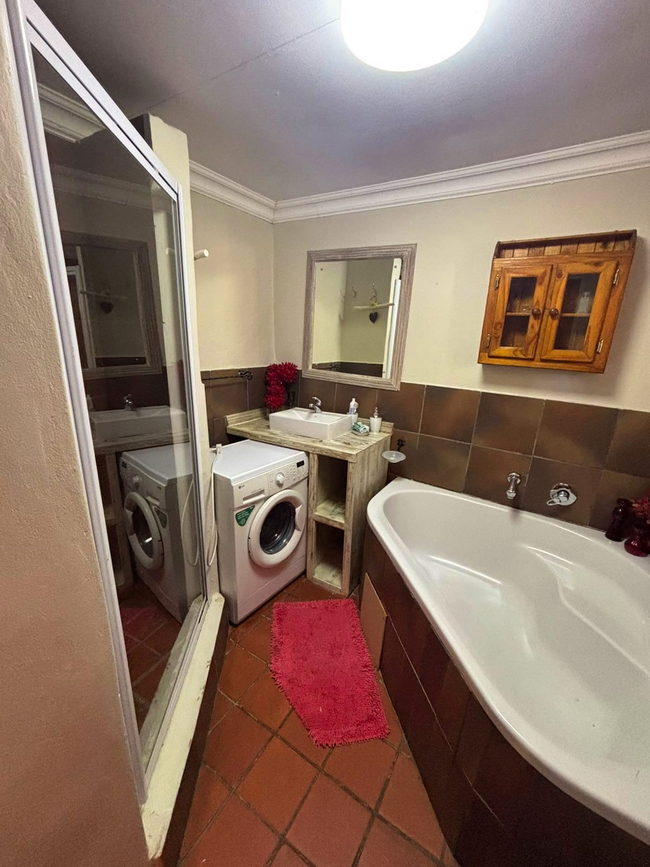 This charming cottage is designed to accommodate up to four guests and features two comfortable bedrooms. The first bedroom is fitted with a double bed and includes an en-suite bathroom equipped with a bathtub, a shower, and a toilet. The second bedroom also offers a double bed and benefits from its own en-suite bathroom, complete with a shower and toilet. Quality linen and soft bath towels are provided for guests' convenience. The heart of the cottage is an open-plan living area that combines functionality with comfort. The kitchen is fully equipped with essential appliances including a stove, oven, microwave, and fridge-freezer. Guests will also find all necessary crockery and cutlery, along with tea- and coffee-making facilities to start the day right. Adjacent to the kitchen is a dining table that seats four, while the lounge area features plush couches and a television, creating an inviting space to unwind. Complimentary Wi-Fi ensures guests remain connected throughout their stay. Outside, guests are welcome to enjoy the peaceful garden surroundings or gather at the communal braai area for a classic South African barbecue experience. For those keen to explore the local area, the Ladybrand Country Club is conveniently located just one kilometre away.