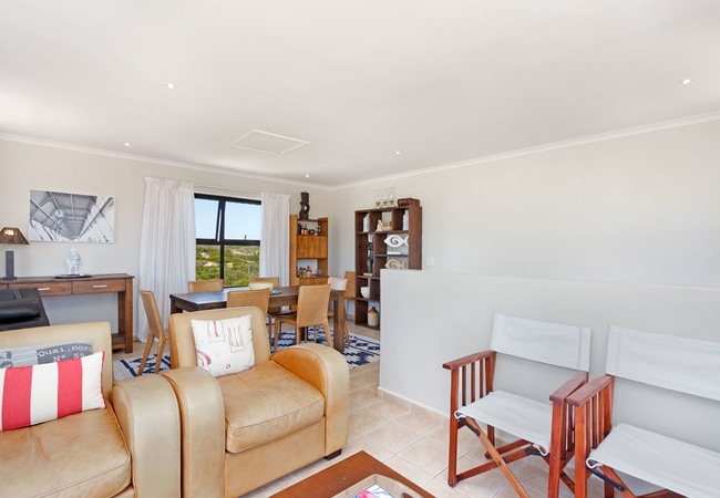 Island View 35 has three bedrooms. Two of the bedrooms are furnished with Queen-size beds and the third bedroom is furnished with a double bed. The main en-suite is fitted with a bath, toilet and basin. The separate bathroom is fitted with a bath, shower, toilet and basin. There is also a guest toilet. The living areas are warm and inviting, consisting of a comfy lounge and dining area, a fully-equipped kitchen complete with a dishwasher, coffee machine and washing machine. The lounge features a flat-screen TV with satellite channels, Wi-Fi and opens onto a furnished balcony with a built-in braai area and seating for six. The stairs lead up to the third floor to a welcoming entertainment lounge that leads out onto the balcony and boasts breathtaking views of the Atlantic Ocean.