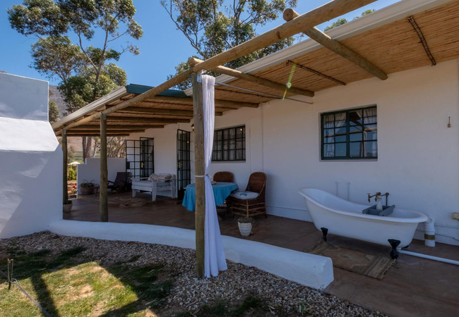 The outdoor patio boasts a built in braai, an outdoor bath-tub as well as a wood-fired hot tub from which to enjoy the peace, quiet and mountain views. Wood for the braai and hot-tub is provided at no extra charge.