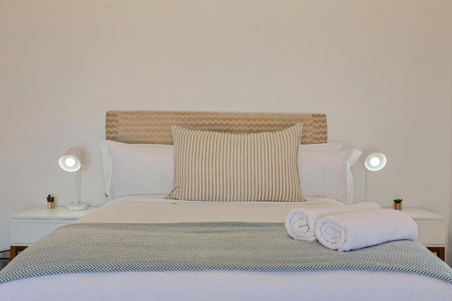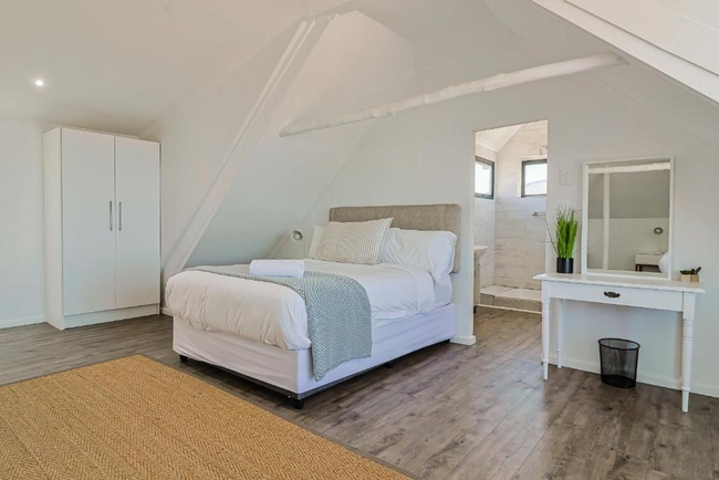 38 on Westcliff has six bedrooms with Queen-size beds and the family bedroom upstairs has an additional two single beds. All rooms have en-suite showers. Two of the bedrooms are upstairs with both bedrooms having access onto their own balcony, which boasts gorgeous views of the sea. The living area is open plan with a beautiful lounge, dining area and fully equipped kitchen, which opens onto two terraces. The living area has a fireplace and smart TV, Wi-Fi available. One of the terraces leads to the plunge pool with sun loungers. There are indoor and outdoor braai facilities.