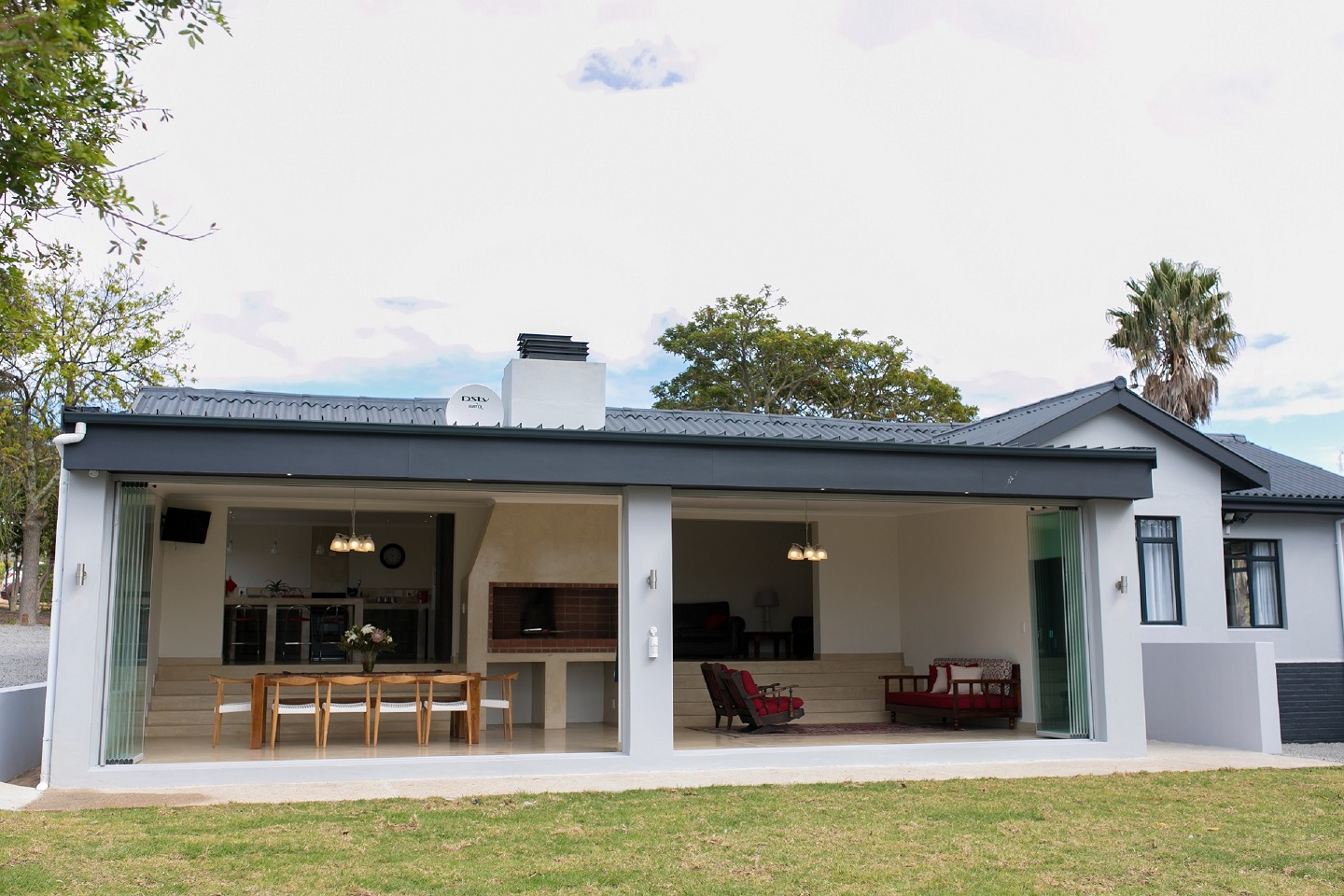 Ideal for a weekend break away with family and friends. The house has four bedrooms, two with en-suite bathrooms, a separate bathroom and a gust toilet. There are four double double beds and two three quarter beds. The house has a big dining room with an indoor braai. There is a spacious kitchen and a comfortable lounge area with a DStv, Wi-Fi and fireplace. Bordering vineyards, the beautiful views make the cottages the ideal resting place whether for travel, holiday or business.