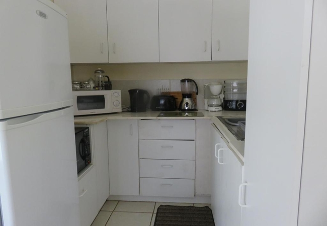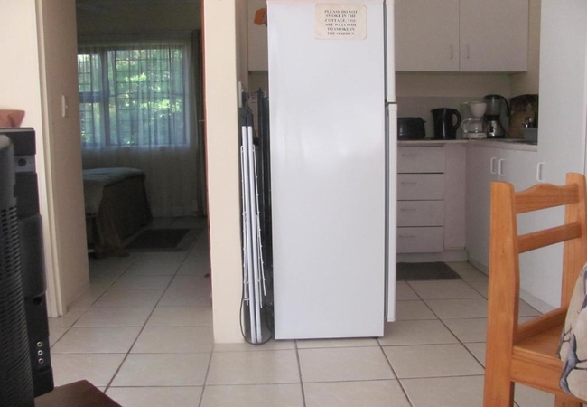 The cottage is equipped with a ceiling fan, wall safe, King size bed (or two single beds), and another two single beds in the lounge. The lounge area is furnished with two armchairs, dining table and chairs, remote control TV with M-Net and shared DStv. There is a fully equipped kitchen with a fridge / freezer, microwave, two plate stove with oven, crockery and cutlery. Hair dryer, bed linen and towels are provided.