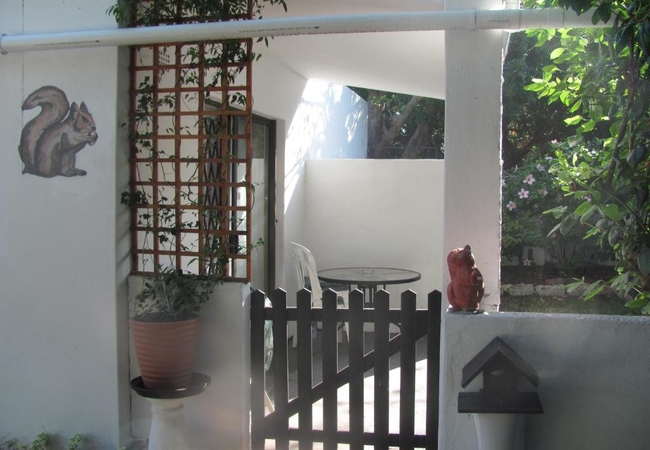 Squirrel Cottage sleeps two guests. The cottage is furnished with a double bed. There is an open plan dining and seating area for relaxing and watching TV. The kitchen is equipped with a microwave oven, two plate stove, oven and fridge. There is also a private garden with a braai area. Tables, chairs and sun loungers are provided.