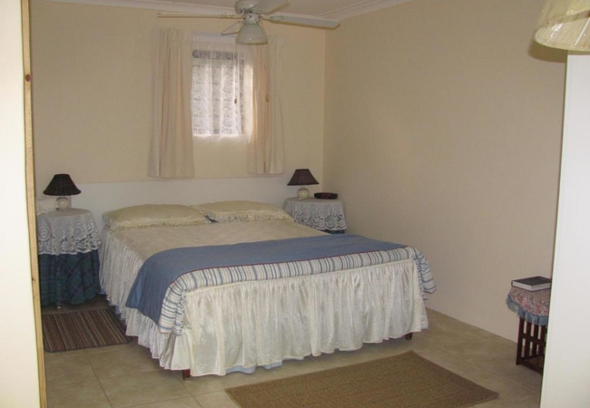 This unit is equipped with a ceiling fan, wall safe, King or two single beds with another two single beds in the lounge. The lounge has two armchairs, a dining table and chairs as well as a TV with M-Net and DStv. The fully equipped kitchen provides a fridge / freezer, microwave, two plate stove with oven, crockery and cutlery. Hair dryer, bed linen and towels are provided.