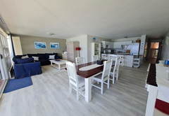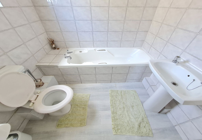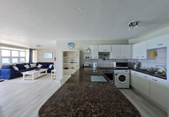 This apartment has three bedrooms. The main bedroom has a king size bed and an en-suite bathroom with a bath. The second bedroom has a double bed and the third bedroom has two single beds (both these rooms share a separate bathroom with a shower). A lovely open plan fully fitted kitchen with washing machine makes self catering a pleasure. The dining room seats six guests, while the cosy lounge area. From here the sliding doors open out onto a large under cover balcony with absolutely exceptional sea views. The scenery can be admired from the kitchen, lounge and dining room. There is a gas Weber on the balcony and the complex has a swimming pool.