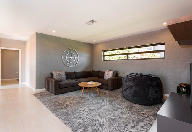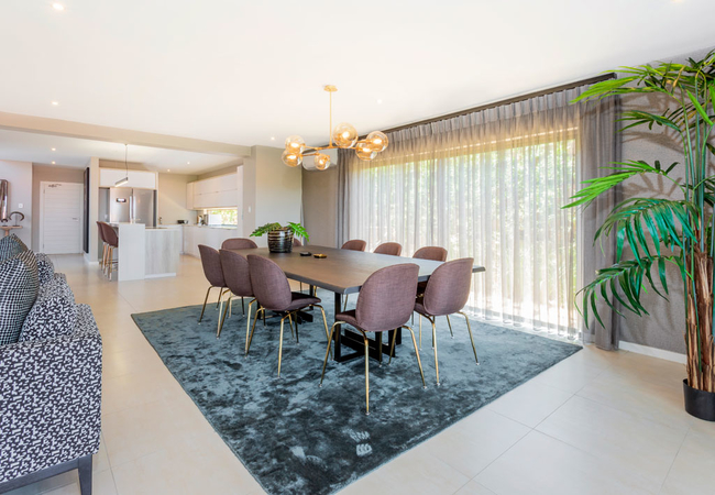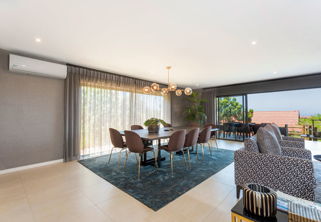 The open plan design of the living areas seamlessly flow onto the covered patio with small intimate garden.