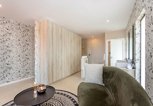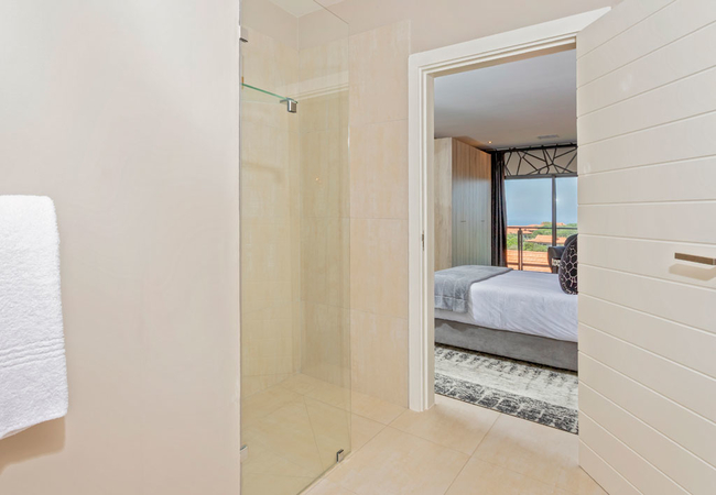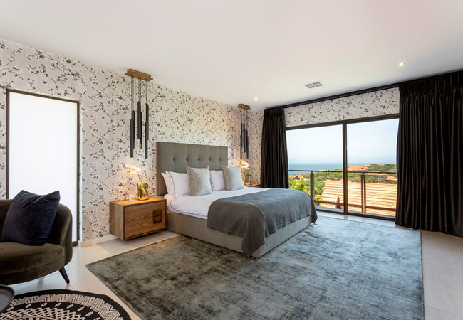 4 Zimbali Hills is a self catering holiday home sleeping eight guests in four bedrooms. Upstairs are four spacious bedrooms, all with en-suite bathrooms and a pajama / TV lounge and giant poof separating the bedrooms and completing the luxury feel of this level. Three rooms have Queen-size beds and one has two single beds.