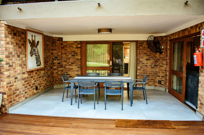 Kruger Park Lodge 505 provides a charming self-catering retreat in Hazyview, ideally situated for visitors seeking proximity to Kruger National Park and the picturesque Sabie River. The villa offers a peaceful escape, perfectly suited for families or groups of friends looking for relaxation and convenience in a scenic environment. Accommodating up to six guests, the villa features three air-conditioned bedrooms and two bathrooms. The main bedroom is appointed with two single beds and boasts an en-suite bathroom equipped with a bath, shower, basin, and toilet. The second bedroom includes a king-size bed, while the third is fitted with a queen-size bed. These two bedrooms share a bathroom furnished with a shower, basin, and toilet. High-quality linen and towels are provided for the comfort of all guests. The air-conditioned open-plan living area includes a fully equipped kitchen, which is fitted with a stove, oven, microwave, fridge-freezer, dishwasher, and washing machine, along with all necessary cutlery and crockery. A breakfast bar with stools complements the space. Adjacent to the kitchen, an eight-seater dining table provides ample room for shared meals, while the lounge area offers plush seating and a wall-mounted TV. Complimentary Wi-Fi is available throughout the villa. Large sliding doors lead to a spacious covered patio, complete with an outdoor dining table and a built-in braai, perfect for al fresco meals. This inviting space flows onto a wooden deck, where guests can enjoy the sights and sounds of the surrounding bushveld. A refreshing splash pool adds to the appeal, offering the chance to unwind while observing wildlife in their natural habitat. Secure parking is provided, ensuring peace of mind throughout your stay.