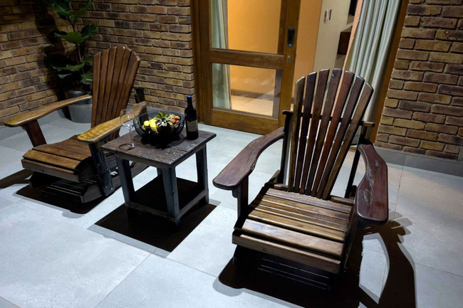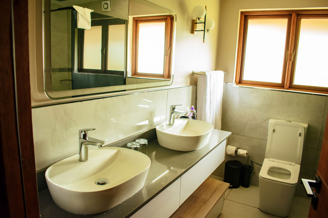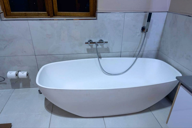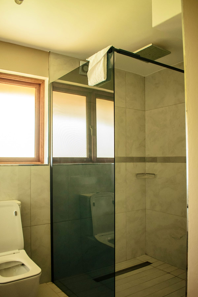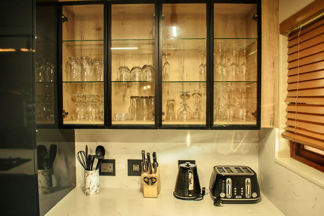 Adjacent to the kitchen, an eight-seater dining table provides ample room for shared meals, while the lounge area offers plush seating and a wall-mounted TV. Complimentary Wi-Fi is available throughout the villa.
