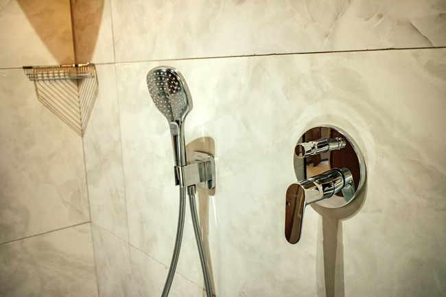 The main bedroom is appointed with two single beds and boasts an en-suite bathroom equipped with a bath, shower, basin, and toilet. The second bedroom includes a king-size bed, while the third is fitted with a queen-size bed. These two bedrooms share a bathroom furnished with a shower, basin, and toilet. High-quality linen and towels are provided for the comfort of all guests.
