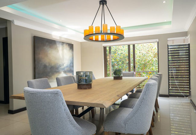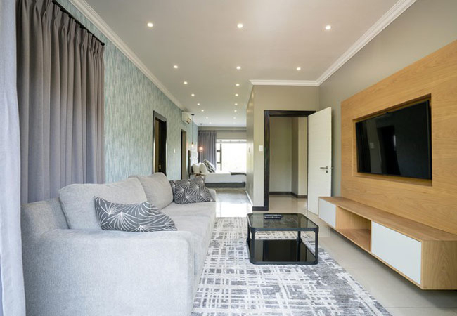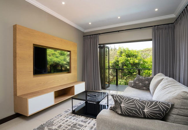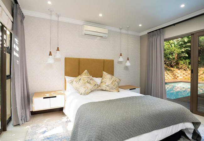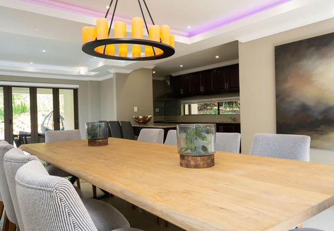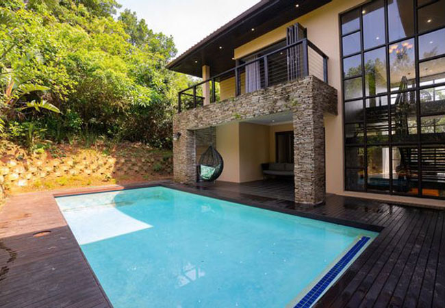 5 Eagle Crescent offers Zimbali accommodation in an elegant, designer four bedroom home privately positioned on a site in Zimbali with lush forest and endless views.