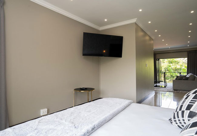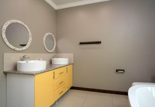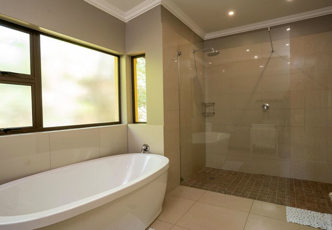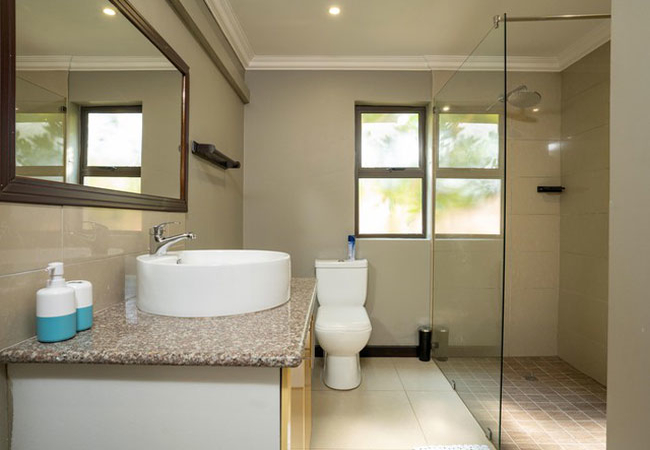 5 Eagle Crescent is a self catering holiday home in Zimbali with four bedrooms. The main bedroom is furnished with a King-size bed and an en-suite bathroom fitted with a bath, shower, toilet and basin. The second bedroom is furnished with two single beds and an en-suite bathroom fitted with a shower, toilet and basin. The third bedroom is furnished with two single beds and has an en-suite bathroom (with an external door) fitted with shower, toilet and basin. The fourth bedroom is furnished with a double bed and an en-suite bathroom is fitted with a shower, toilet and basin.