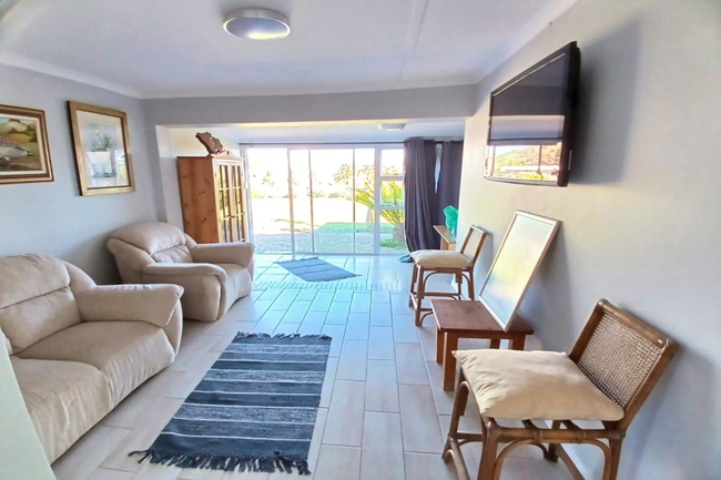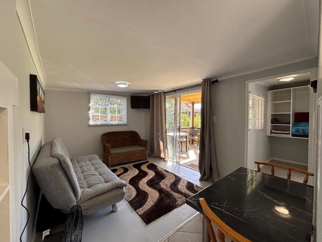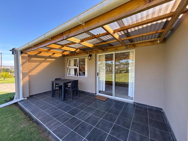 The Main Suite opens onto a patio with outdoor seating and a built-in braai area, perfect for unwinding in the peaceful surroundings. Secure parking is available on site.