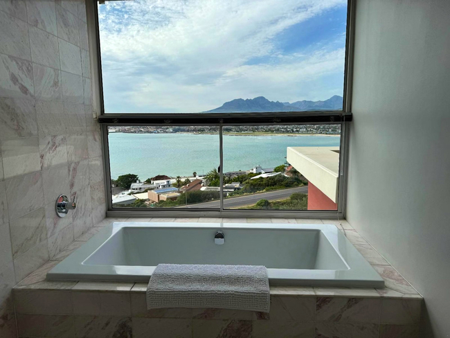This holiday home has 3 bedrooms, one with a king bed and 2 with double beds, with a single bed in the study. Set high on the slopes of Mountainside in Gordon’s Bay, 5 Suikerbossie provides a refined holiday retreat with commanding 180 degree views over the wide curve of False Bay. Sheltered by the Hottentots Holland mountains and positioned at the start of the Whale Route, the home is designed to celebrate one of the Western Cape’s most impressive coastal settings. Its bold contemporary architecture stands confidently against the mountain, creating a striking contrast with the natural surroundings. From this elevated position, guests can admire False Bay, the Gordon’s Bay harbour, and the far reaching coastline, which together create a peaceful and unforgettable backdrop. Inside, the home is arranged to maximise comfort and scenery. The living and dining areas are framed by expansive sliding glass doors that fill the space with natural light and highlight the uninterrupted ocean views. The kitchen is fully equipped for self catering and includes cookware, cutlery, crockery, an oven, a stove, and a washing machine. The bedrooms offer calm and restful spaces with comfortable bedding, crisp white linen, and in some cases, direct access to outdoor areas. The outdoor terraces are a standout feature and now include newly fitted outdoor showers. A large covered balcony leads off the main living area and provides an ideal setting for sunbathing on loungers or enjoying meals at the outdoor dining table, which is paired with a built in braai. A second balcony offers a more secluded viewpoint with uninterrupted vistas over the harbour. The home serves as an excellent base for exploring the region, providing the serenity of mountainside living along with convenient access to the beaches of Gordon’s Bay.