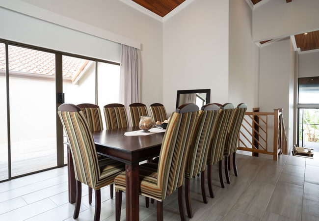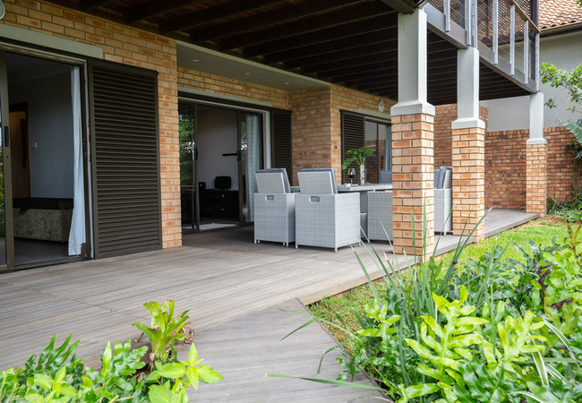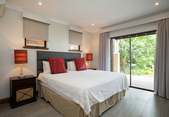 5 Zimbali Ridge is a self catering holiday home sleeping eight guests in four bedrooms. Each bedroom has a Queen-size bed and an en-suite bathroom. Two rooms are on the lower floor level. The bedrooms are separated by a ‘pajama' lounge, leading onto the garden. There are both shower and bath facilities available for guests.