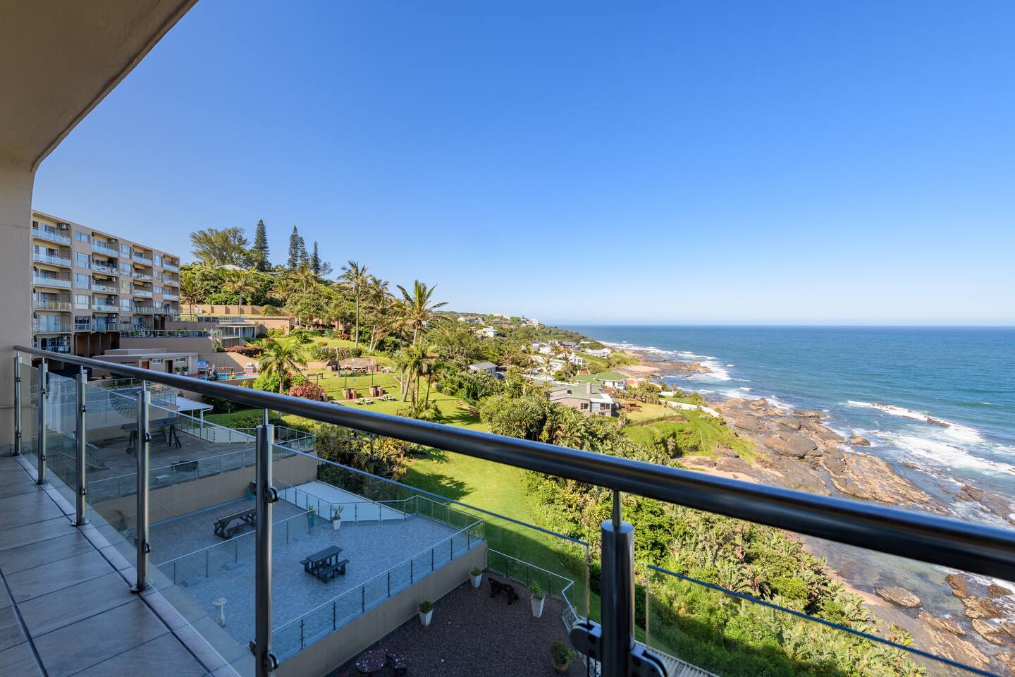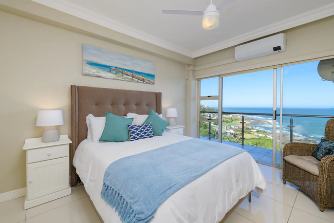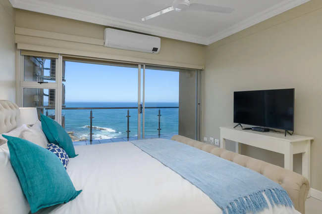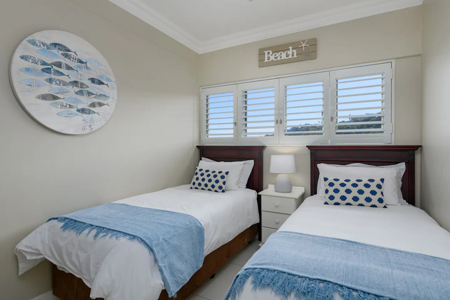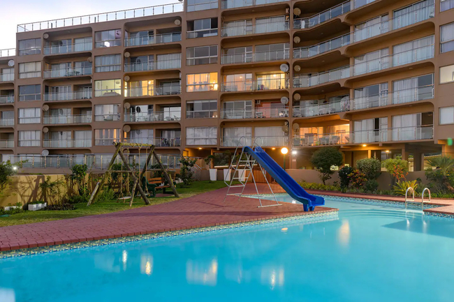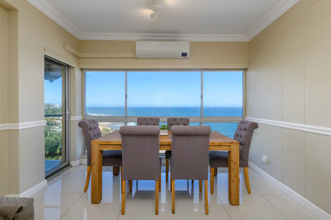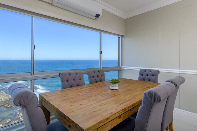Awaken to panoramic views of the Indian Ocean, stretching endlessly both to the north and south. This coastal vista becomes an integral part of your stay, offering a visual symphony that complements the luxurious living experience. The main bedroom is furnished with a double bed, the second bedroom has two single beds, and the third bedroom also features a double bed. Each of the two bathrooms is equipped with showers, hand basins, and WCs. Delight in culinary excellence with our fully equipped, contemporary kitchen featuring top-of-the-line appliances and stylish design, ensuring a seamless cooking experience. Enjoy perfect comfort with air conditioning in the lounge and two of the three bedrooms, providing a cool retreat after sun-soaked adventures. Experience a seamless stay with our apartment's inverter, guaranteeing uninterrupted power and comfort even during fluctuations. Indulge in premium entertainment with a full DSTV package in three rooms, high-speed internet, and smart TVs for an immersive, connected experience. Enhance your evenings with a sophisticated soundbar, creating the perfect ambiance for relaxation. A lockbox at the front door provides convenient access, with the code supplied in your check-in details. Reserve your coastal escape now and let the Dolphin Coast serve as the stunning backdrop to your unforgettable stay. 603 Villa Royale awaits you – where luxury meets the rhythmic melody of the Indian Ocean.