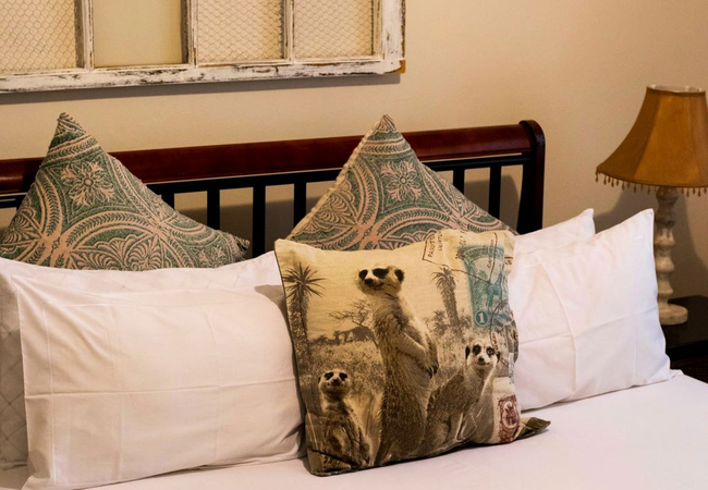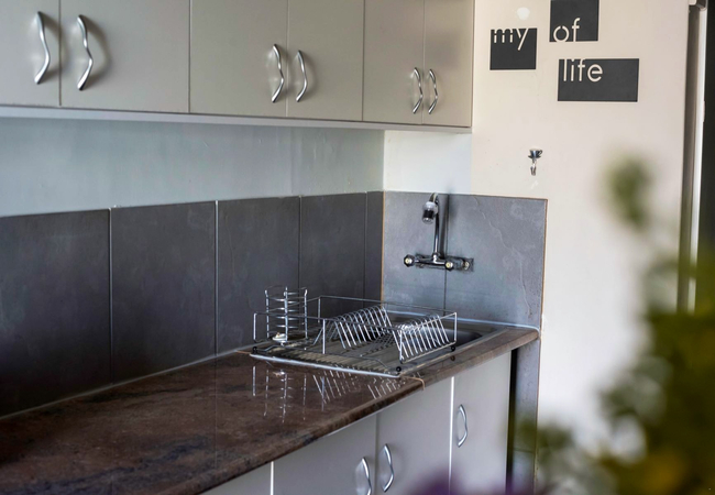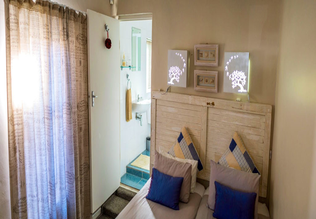 This room is furnished with a queen-size bed, and features an en-suite bathroom fitted with a shower. There is a small open-plan kitchen, a dining area and a lounge with a TV with a full selection of DStv channels and Wi-Fi.
