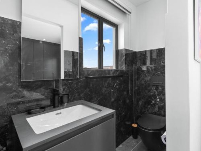 This lovely home features three generously sized bedrooms. Two of the bedrooms come with en-suite bathrooms, each equipped with a shower and toilet, while the third bedroom, furnished with a queen-size bed, shares access to a bathroom that offers both a bathtub and shower.