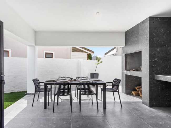 Outside, the home features a patio complete with outdoor furniture, a dining area, and braai/barbecue facilities, creating an excellent spot for enjoying meals in the fresh air.