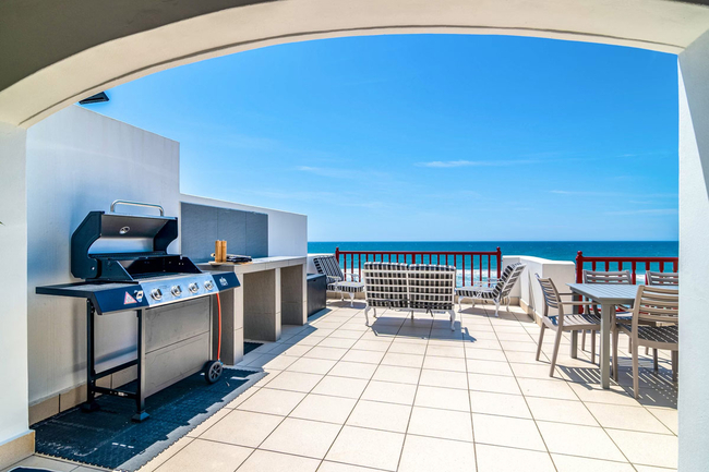 Guests may enjoy the use of the communal swimming pool, secure on-site parking and direct beach access. The apartment’s central position allows for effortless access to nearby restaurants and a variety of coastal pursuits, making it particularly well suited to families and groups seeking both convenience and relaxation.