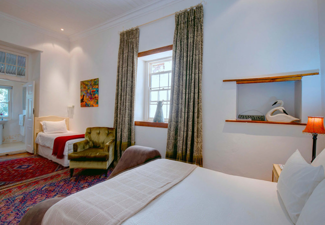 The Courtyard Room is furnished with a Queen-size bed and single bed and has an en-suite bathroom with shower. The rooms are comfortable, air-conditioned, spacious bedrooms, each with its own bathroom-en-suite, TV and DStv, fridge, coffee and tea making facilities.