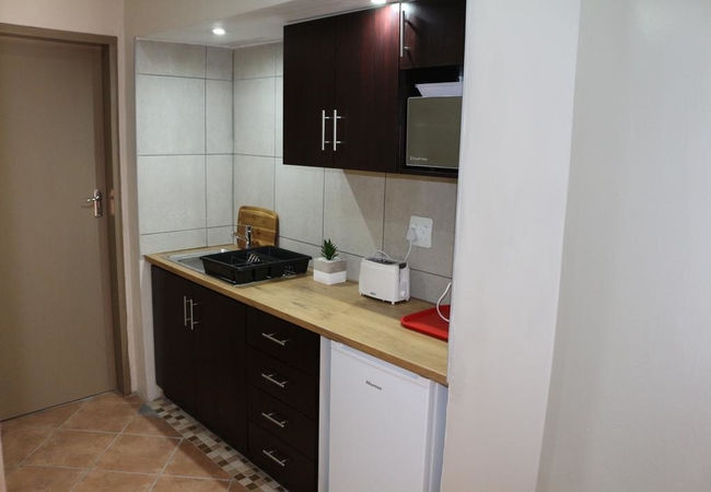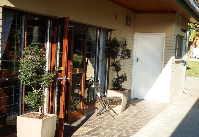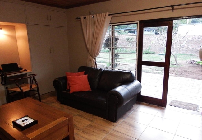 Self-catering Unit with a queen-size bed. Unit is spacious (48 m²) modern and has a queen size bed, en-suite bathroom and seating area with garden view. Outside Entrance. TV, DSTV, high quality bedding and air-conditioning. Separate kitchenette.
