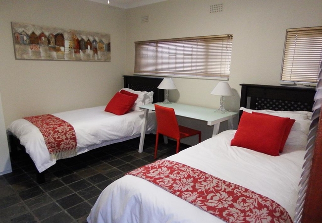 The room has 2 x single beds and en-suite bathroom. TV, DSTV, high quality bedding, air-conditioning, fridge and tea and coffee facilities. Each room offers Tea / coffee facilities, a fridge. DStv, High quality bedding and air-conditioning.