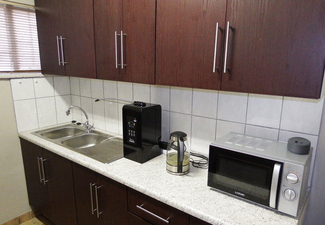 The room is spacious (42m²) and modern and has two three-quarter beds, en-suite bathroom and seating area. TV, DSTV, high quality bedding and air-conditioning. Includes a small kitchen with fridge, microwave, double hot plate and tea and coffee facilities. Each room offers Tea / coffee facilities, a fridge. DStv, High quality bedding and air-conditioning.