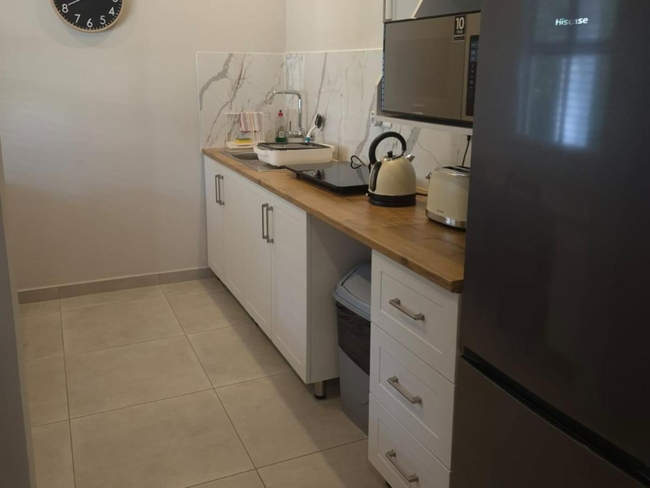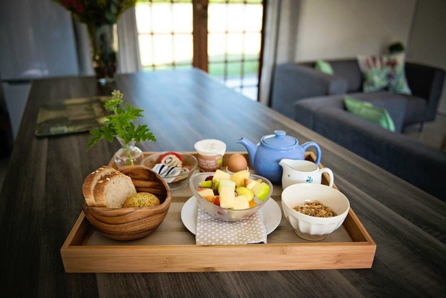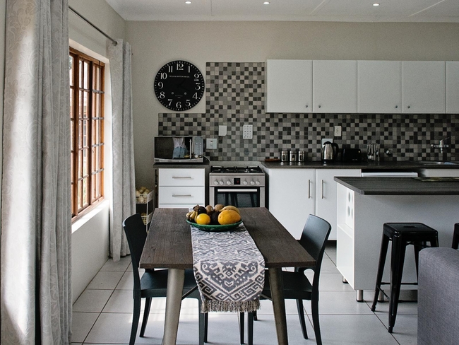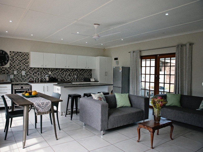 Waterberry Suite is a modern 35 square metre studio garden cottage offering a comfortable and private stay. The bedroom is furnished with two three quarter beds and connects to an open plan seating area with a TV, creating a relaxed space for rest and downtime. An en suite bathroom provides convenience, while the galley kitchen is ideal for simple self catering. The unit is air conditioned for year round comfort and enjoys garden views from its peaceful setting.