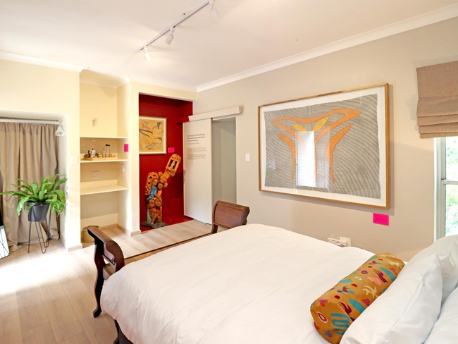 A42 House in Parktown North presents an unusual “Stay at the Museum” concept, where African heritage is thoughtfully interwoven with modern artistic expression. Each stay becomes an immersive experience, as guests are accommodated in curated “bedroom exhibits” that are reimagined every nine months by local artists and storytellers. These evolving spaces offer layered interpretations of Johannesburg, reflecting the lived experiences and creative visions of those connected to the city.
