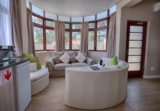 This large King Room with Balcony accommodates three guests and is furnished with either a King-size bed or twin beds (please advise your preference after you confirm your booking) and a bathroom fitted with a bath and shower. Other in-room facilities include a sleeper couch, TV with DStv, air-conditioning, free Wi-Fi, a kitchenette with a bar fridge, microwave, toaster, kettle as well as crockery and cutlery. Please note there is no sink or stove.