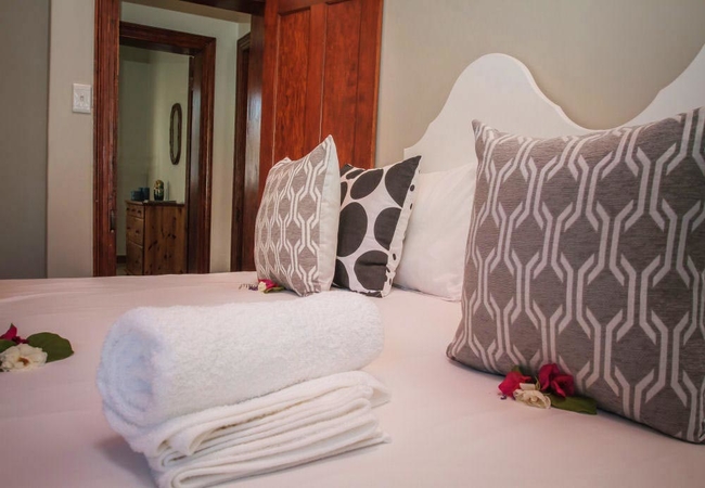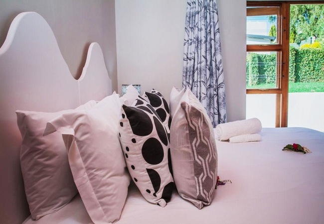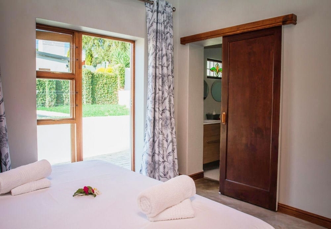 A small garden creates a private and peaceful area to socialise with braai facilities and a small outdoor splash pool to cool off in. We have a wheelchair ramp for easy access to the premises.