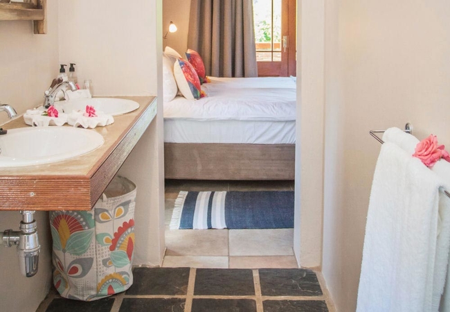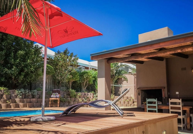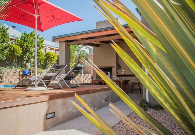 A small garden creates a private and peaceful area to socialise with braai facilities and a small outdoor splash pool to cool off in. We have a wheelchair ramp for easy access to the premises.