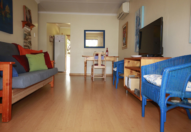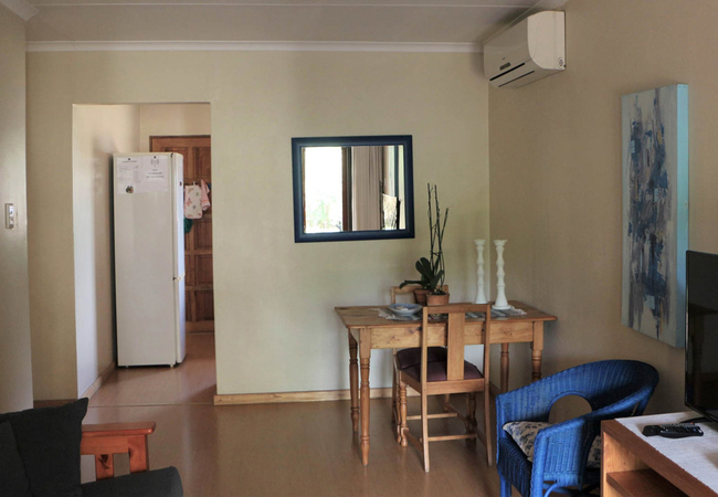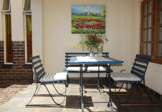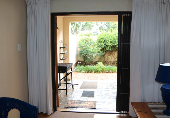 From secure parking the private entrance leads to a secluded patio and garden with a Weber barbeque facility. The living area hosts DStv (satellite television). Free Wi-Fi connection is available.