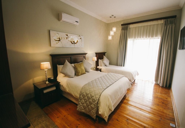 Ideal for those traveling as a family with children. One double bed, one single bed and an en-suite bathroom. All the rooms include private bathrooms, independent TV with DStv, Wi-Fi, tea / coffee making facilities, bar fridge and air conditioning.