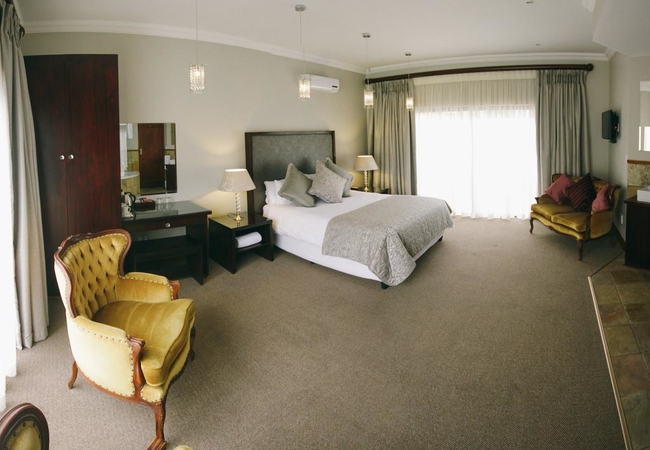 This room includes a Queen-size extra length bed and an en-suite bathroom. All the rooms include private bathrooms, independent TV with DStv, Wi-Fi, tea / coffee making facilities, bar fridge and air conditioning.