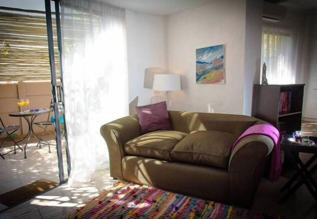 The Deluxe Studio Ground Floor is a large living space furnished with a King-size bed. The en-suite bathroom is fitted with a shower, toilet and basin. The studio has a writing desk and a private patio where you can relax after a day of exploring what Stellenbosch has to offer. Other facilities include TV with DStv, free Wi-Fi, a desk with chair and tea and coffee making facilities.
