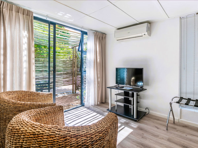 The Poolside Queen Room is a spacious room that has everything you need to make your holiday perfect! The room is furnished with a Queen-size bed and has an en-suite bathroom fitted with a shower, toilet and basin. A sliding door leads out on to the communal patio space, plunge-pool and garden. Feel free to take a swim or sit out on the patio and enjoy the sunshine. Other facilities include TV with DStv, free Wi-Fi, a desk with chair and tea and coffee making facilities.
