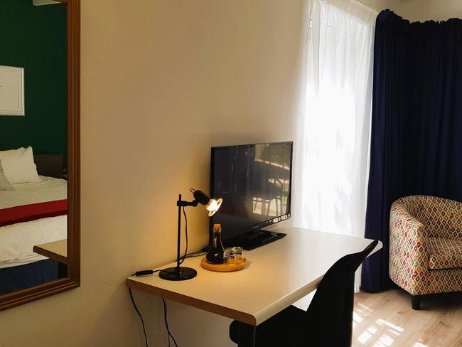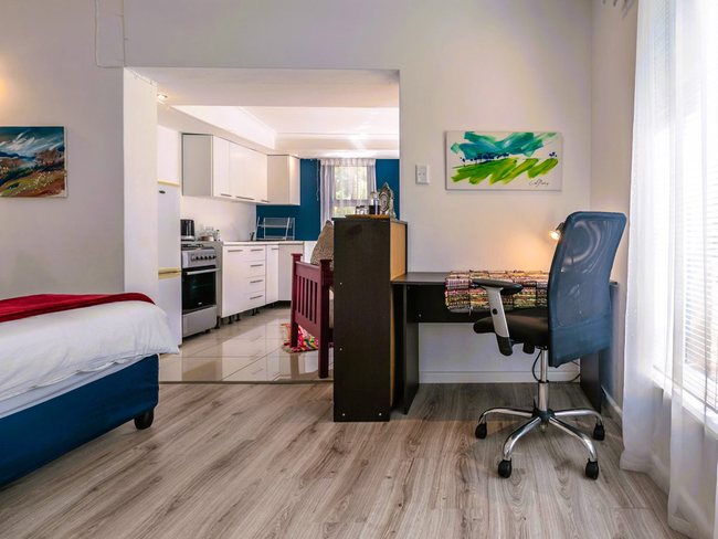 The Deluxe Loft Studio is spacious with plenty of light. The studio is furnished with a Queen-size bed and has an en-suite bathroom fitted with a shower, toilet and basin. The studio has a beautiful view of the mountains. Other facilities include TV with DStv, free Wi-Fi, a desk with chair and tea and coffee making facilities.