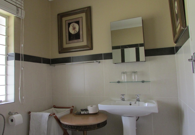 Acacia House comprises a private entrance, to a spacious lounge and kitchen. Facilities include breakfast bar, microwave, fridge and freezer. The lounge features a log fire place and TV with DSTV. Off the lounge area is the double bedroom, which boasts a king size bed with luxury linens and an office area. The en-suite bathroom has a bath with an overhead shower. The patio leads out to the swimming pool with a rock feature and braai facilities.