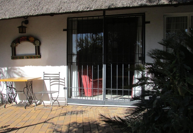 The patio leads out to the swimming pool with a rock feature and the braai facilities. There is furniture on the patio where you can sit and relax after a long day of exploring or working.