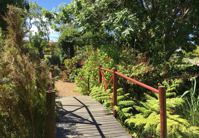 The cottage has 2 bedrooms - one King and one twin - and can sleep up to 4 people. The King bedroom (with an extra length bed) has a luxury en-suite bathroom with bath and separate shower, under floor heating and a heated towel rail. The twin bedroom is upstairs under the thatched roof, and has its own en-suite bathroom. Both bedrooms have programmable aircon / heating units. The fully equipped kitchen has a combination microwave / oven / grill, fridge / freezer, electric hob and dishwasher. The double volume lounge area features an open fireplace and has satellite TV with PVR for recording your own programmes. A DVD and CD player, and surround sound system is also provided. Both the double bedroom and the lounge area have double doors opening out onto your large deck (42m2!) with access to your private garden area.