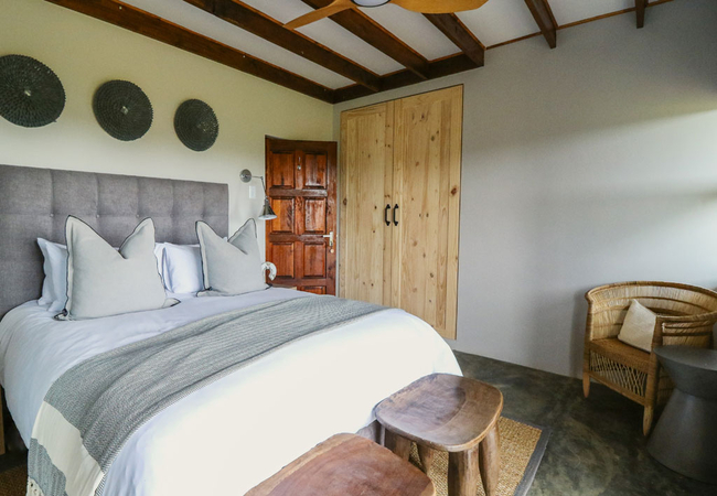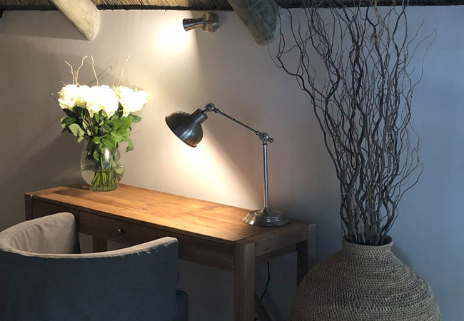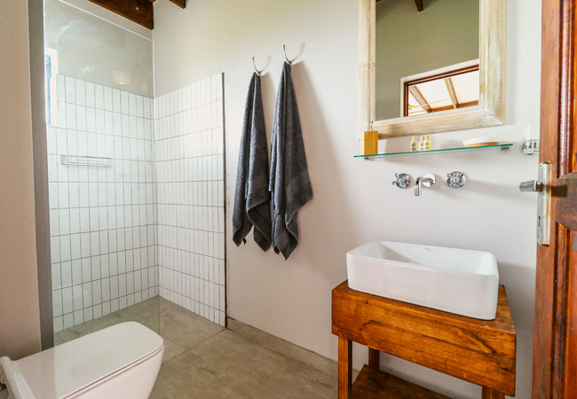 Barefoot Addo Elephant Villa has three beautiful en-suite bedrooms. Two of the rooms are furnished with King-size beds and the third has a Queen-size bed. The en-suite bathrooms are each fitted with a shower, toilet and basin. Each room leads onto the deck which offers spectacular views of the bush.
