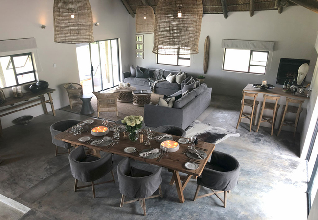 The Luxury Family Villa has three beautiful en-suite bedrooms. Two of the rooms are furnished with King-size beds and the third has a Queen-size bed. The en-suite bathrooms are fitted with a shower, toilet and basin. Each room leads onto the deck with spectacular views of the bush. The villa has an open plan lounge, bar area and dining space with a fireplace. There are indoor and outdoor dining options and braai facilities. The kitchen is fully equipped including a gas cooker. The mezzanine level is perfect for children or teens to lounge in. Outside is a swimming pool where guests can cool off on the hot summer days. With staff at your beck and call, you are guaranteed to be well looked after during your stay and you can choose exactly how you want to spend your days in the bush. A dedicated butler / housekeeper sees to your every need, a private chef cooks up whatever your heart desires.