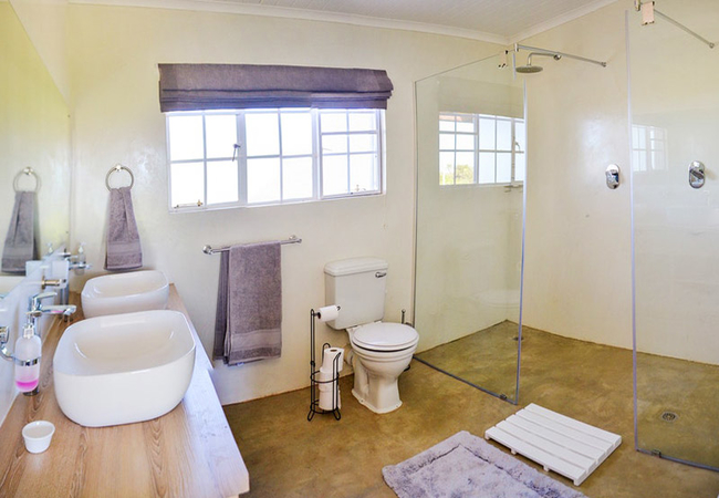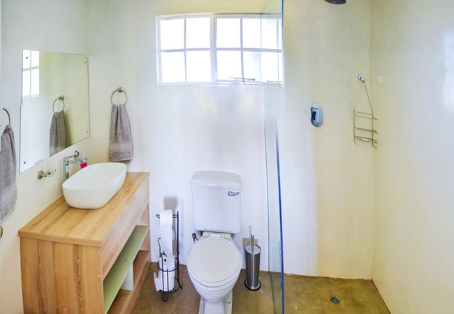 Cottage 1 can sleep four adults and two children and has one air-conditioned bedroom furnished with twin beds that can be converted into a Queen-size bed. There is one bathroom fitted with a shower, basin and toilet. The open-plan living area has two sleeper couches for two children to sleep on. The adjacent well equipped kitchen contains a fridge, a microwave, a two-plate gas stove, kettle and a toaster. Guests have access to the braai area located near to the cottage.