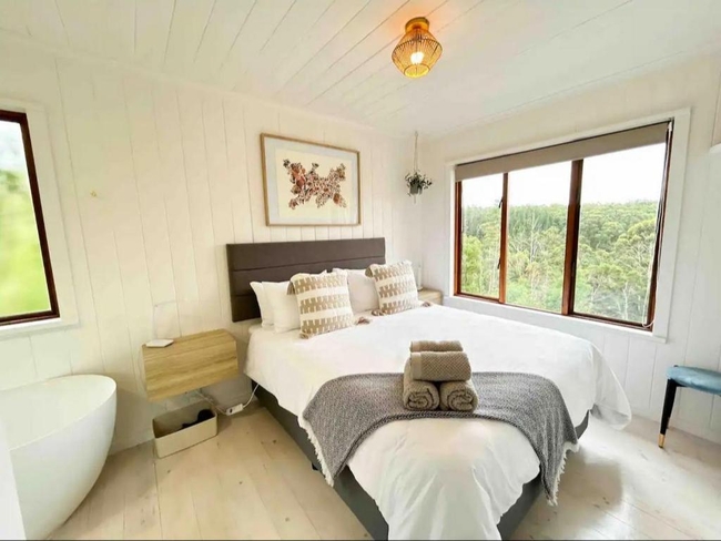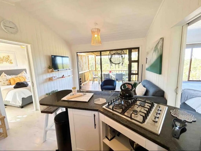Our accommodations feature elevated wooden chalets, each designed with comfort in mind. Every chalet boasts two intimate bedrooms with en-suite bathrooms, open-plan kitchens that flow into cozy lounge areas, and a private, covered deck. Each unit is equipped with a shower and bath, two queen-sized beds, and a front porch with a stunning view of the valley.